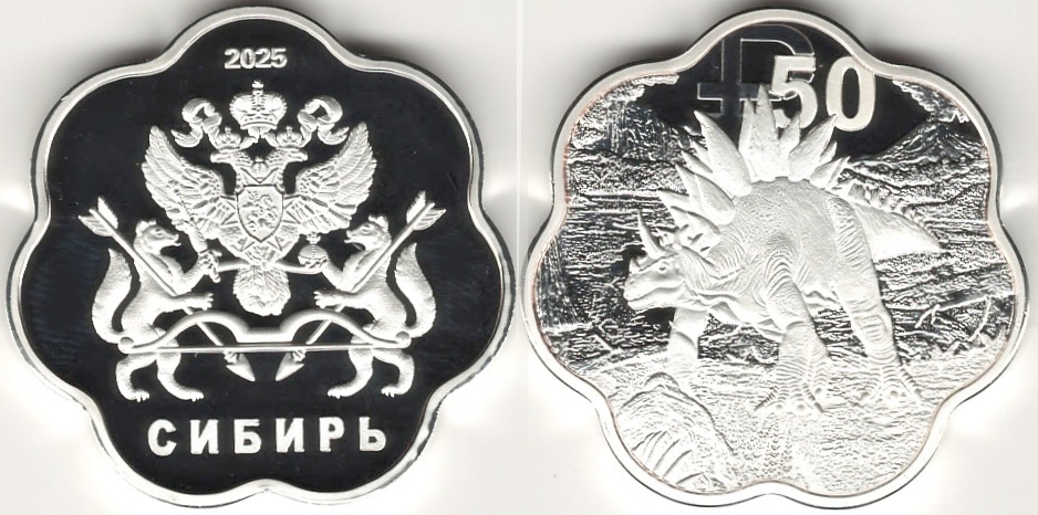 Stegosaurus is featured on this unofficial 2025 dated 50 Ruble coin of