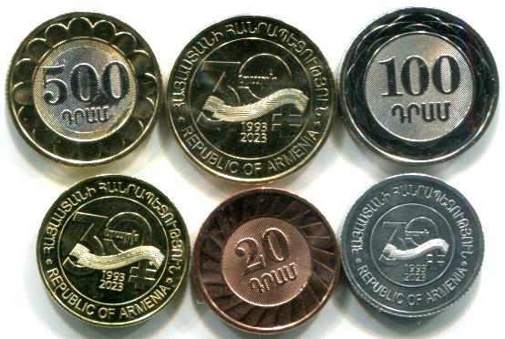 AM-SET23 ARMENIA 6 COIN SET 10-500 DRAM 30th