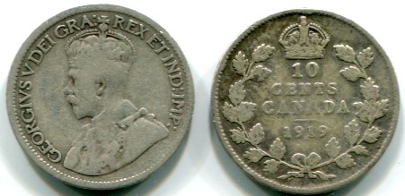 featured on this silver 10 Cent coin from Canada. The coin is dated