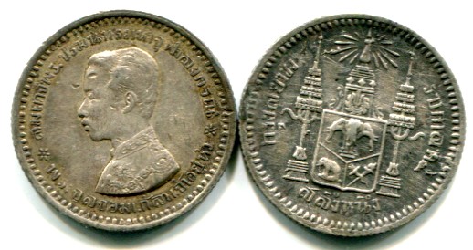 SIAMESE SILVER QUARTER BAHT OF KING RAMA V